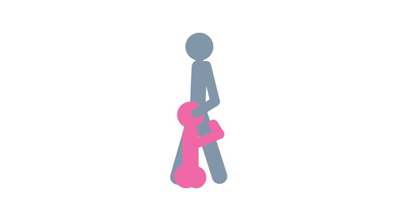 Dương vật sau khi được đưa vào âm hộ của nữ giới rồi thì người đàn ông sẽ giữ chân đùi người tình của và từ từ đứng thẳng dậy. Trong khi đó, người nữ sẽ dùng đôi tay của mình để chống xuống nệm sao cho phù hợp với khoảng cách kéo lên của bạn tình.